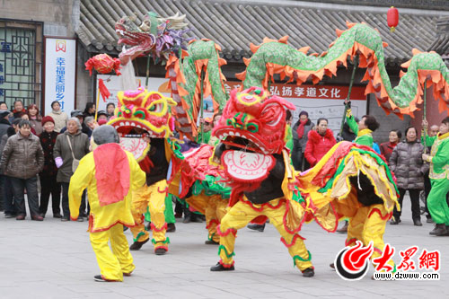 孝泉古鎮上的舞龍舞獅表演