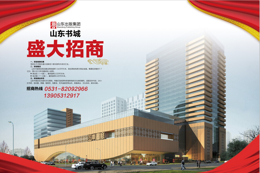 山東出版集團有限公司投資建設的山東書城項目位于濟南市勝利大街56號,總建筑面積13.1萬平方米,總投資約7.7億元,是山東省、濟南市兩級重點文化工程項目,定位為山東省首家新業(yè)態(tài)綜效性文化綜合體,建成后將帶動周邊產(chǎn)業(yè)發(fā)展,成為“文化山東”的重要組成部分和新的文化地標。