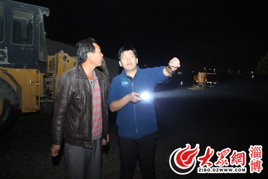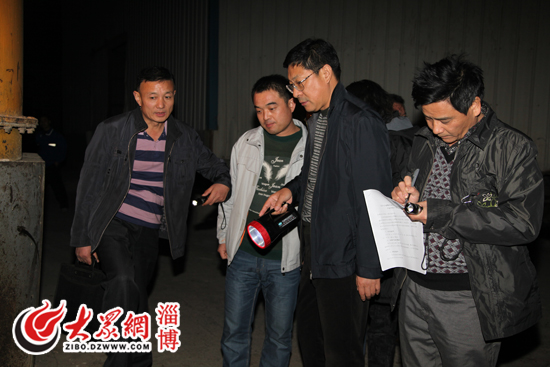 淄博市環保局局長于照春帶隊夜查建陶企業。