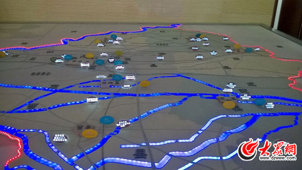 菏澤在全市范圍內(nèi)對影響大氣環(huán)境質(zhì)量的所有污染源開展排查摸底。在菏澤市環(huán)保局門口,重點(diǎn)污染源被標(biāo)注在電子沙盤上,一目了然。記者 馬俊驥 攝。