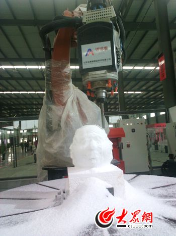 隨后,諾博泰的工作人員向大眾網(wǎng)記者介紹,這是諾博泰自主研發(fā)的CNC軟件與德國機器人的完美結(jié)合。這種技術(shù)類似3D打印技術(shù),但是比3D打印制作的更加細膩具體。不僅能做雕刻、畫畫這樣的“細活”,還可實現(xiàn)機床加工的全部功能。