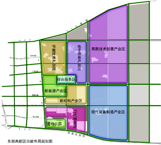 <東部高新區規劃面積40平方公里,主要引進高新技術及商貿物流等節能環保項目,已有東方雨虹、北京創導、山東蘭劍物流、順方管業、瑞那斯節能門窗幕墻等一批實力雄厚的上市公司和行業龍頭進駐。