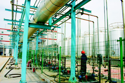 <通過招商引資和扶持本地企業發展,臨邑縣投產和在建的以齊魯制藥、信立泰制藥為龍頭的醫藥企業及生產基地達20多家,形成一個集產品研發、藥物鑒定、生產銷售于一體,年銷售收入過百億元的現代生物醫藥產業體系。圖為齊魯制藥臨邑生產基地裝置一角。
