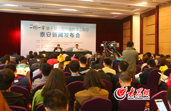 “聚焦‘一圈一帶’——第十屆中國網絡媒體山東行”泰安新聞發布會現場。