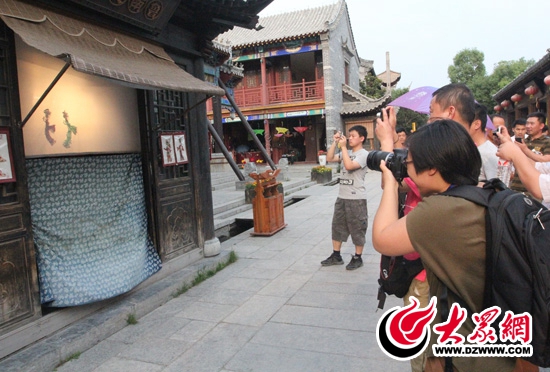 今天下午,“聚焦美麗山東——第九屆中國網絡媒體山東行”西線采訪團來到棗莊市臺兒莊古城采訪參觀,記者們在古城門口合影留念。 記者 郭豪 攝