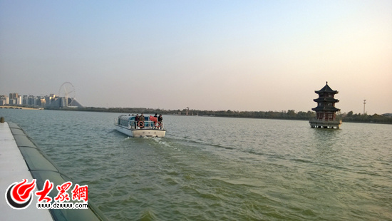 10月27日下午,聚焦“一圈一帶”第十屆中國網(wǎng)絡(luò)媒體山東行采訪團(tuán)記者泛舟東昌湖采訪。記者 馬俊驥 攝