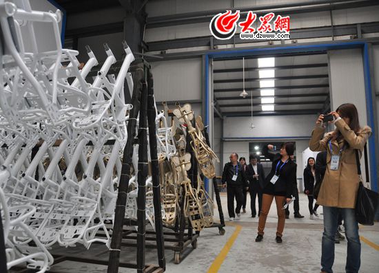 10月30日上午,“聚焦‘一圈一帶’——第十屆中國網絡媒體山東行”采訪團來到棗莊威斯特車業,參觀生產車間。記者 王宗陽 攝