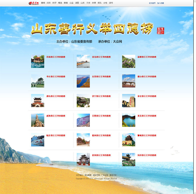 為進(jìn)一步培育和踐行社會(huì)主義核心價(jià)值觀,落實(shí)中宣部和山東省委推廣善行義舉榜現(xiàn)場會(huì)會(huì)議精神,由山東省委宣傳部主辦、大眾網(wǎng)承建的“山東善行義舉四德榜”網(wǎng)上展示平臺(tái)日前開始試運(yùn)行。