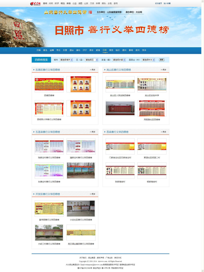 “山東善行義舉四德榜”展示平臺(tái)秉承弘揚(yáng)“四德”的宗旨,通過先進(jìn)的網(wǎng)絡(luò)技術(shù),將山東各地的“四德榜”搬上互聯(lián)網(wǎng),借助網(wǎng)絡(luò)強(qiáng)大的傳播力量,讓每一個(gè)榜單都能被大家看到,每一位榜上有名的模范都能被褒揚(yáng)和學(xué)習(xí),從而在互聯(lián)網(wǎng)上形成“人人做好人,好人做好事,好事就上榜,好人有好報(bào)”的良好氛圍。整個(gè)平臺(tái)涵蓋了17市的137個(gè)縣(市、區(qū)),各個(gè)村(社區(qū))、學(xué)校、企業(yè)和窗口單位的“四德榜”可以即時(shí)在網(wǎng)上呈現(xiàn)。隨著展示平臺(tái)內(nèi)容的不斷完善,網(wǎng)站將開通互動(dòng)功能,網(wǎng)友可以對(duì)各地的“四德榜”和模范進(jìn)行點(diǎn)評(píng);網(wǎng)站將逐步成為實(shí)時(shí)展示各地工作成果,考核各地工作情況的多功能綜合性平臺(tái)。同時(shí)網(wǎng)站也將開設(shè)各類專題和舉辦多種活動(dòng),開通微博、微信,上傳微電影、微視頻,使社會(huì)主義核心價(jià)值觀在廣大群眾中以寓教于樂的形式得到最廣泛的弘揚(yáng)和踐行。