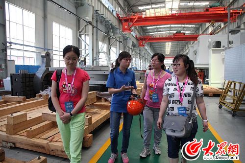 “走近山東創(chuàng)造——全國網(wǎng)絡(luò)媒體齊魯行”采訪團(tuán)參觀濟(jì)南二機(jī)床生產(chǎn)車間。