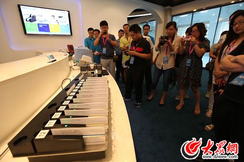 “走近山東創(chuàng)造——全國網(wǎng)絡(luò)媒體齊魯行”采訪團(tuán)參觀青島海爾集團(tuán)展廳。