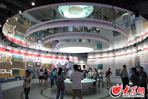 “走近山東創(chuàng)造——全國網(wǎng)絡(luò)媒體齊魯行”采訪團(tuán)參觀威海新北洋集團(tuán)展廳。