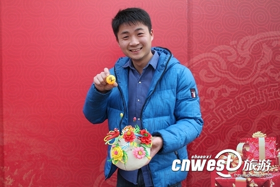 游客參與“游驪山品年味 文明禮包飛”活動,抽到精美“臨潼花饃”