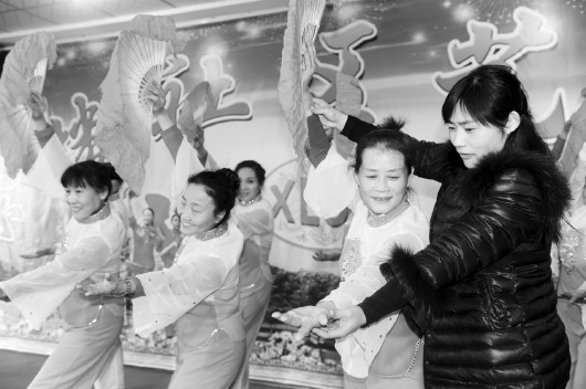 ◤1月24日,棗莊市嶧城區徐樓社區藝術團的演員在編排節目。春節期間,該區將有64家莊戶劇團1800余名文藝愛好者,在各自的村居為村民自編自演戲曲、歌舞、小品等! 鯇O啟路 岳增群 報道