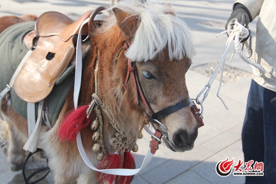小朋友在騎美國(guó)小矮馬。 大眾網(wǎng)記者 劉明明 攝