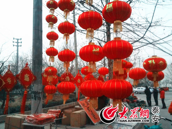 29日,泰安各地年貨大集依舊熱鬧非凡,作為年終的最后一個大集,更多的人喜歡在這一天采購時令新鮮的蔬菜以及肉制品。在農村,有著年二十九、年三十這兩天貼春聯、掛燈籠的的習俗,年二十九的最后年貨大集上,春聯和燈籠也成了最為搶手的年貨。在泰安寧陽北關村農貿市場,除了印刷好的春聯售貨攤外,兩位書法愛好者現場擺案,揮毫潑墨書寫春聯,每寫一副便被搶購一空。在泰安東平后屯村農貿市場,火紅的燈籠被高高掛起。據攤主介紹,隨著春節的臨近,燈籠也火了一把。在春節,各地都有懸掛燈籠的傳統,一是基于傳說,年是一種怪物,懸掛燈籠為了嚇唬年。二是燈籠代表紅紅火火,極其喜慶。不僅家門口懸掛燈籠,美麗紅火的中國結,也因為喜慶的原因,十分暢銷。“現在人的思想提高了,過年放鞭炮的少了,掛燈籠和中國結的多了,大家要過個安靜年、快樂年、安全年、喜慶年,還是燈籠什么的受歡迎,環保安靜沒噪音。”一位正在選購燈籠的顧客告訴記者。