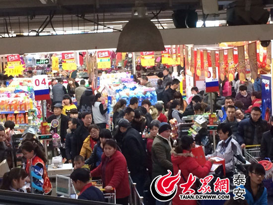 泰安市某大型超市內擠滿了購物的市民。(記者 張冉 攝)