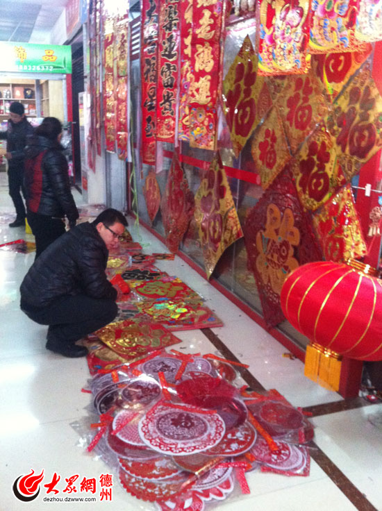 隨著馬年春節(jié)的臨近,德州市德百物流批發(fā)城、城隍廟市場等都在入口處顯眼的地方開辟出一塊年貨區(qū),紅彤彤一片,專門銷售春聯(lián)、福字、窗花、門貼、中國結(jié)、紅燈籠等中國特色的年貨。