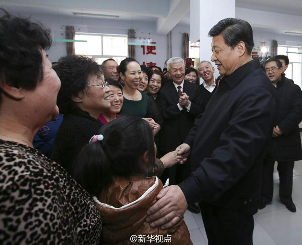 在錫林浩特市愛民社區,習近平走進衛生服務站、民惠超市、便民服務大廳,同工作人員和居民親切交談,了解社區關心低保戶、殘疾人及建設關愛型社區情況,對社區工作給予肯定。上車前,他叮囑社區負責人:“要把人民放在心中最高位置,全力為群眾排憂解難。”