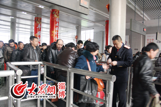 馬上要過春節了,很多家在外地的人都抓緊最后的時間搭上回家的列車。記者在1月28日(臘月二十八)下午4點來到淄博站二樓東候車室時,發現已經沒有空余的座位,檢票口前也排起了長長的隊伍。在檢票員朱文告訴記者,下午2點到5點是車次最密集的時刻,也是檢票員最忙的時間。
