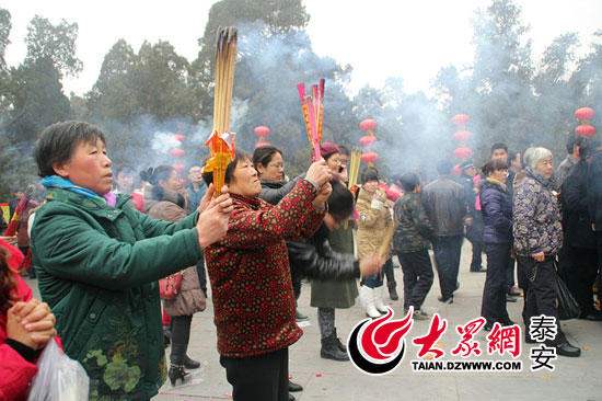 “今天我們拜完年就來到小泰山磕頭燒香了,每年初一我們都會來,借泰山靈氣,祈求泰山老奶奶保平安!”一位泰安本地的香客告訴記者。