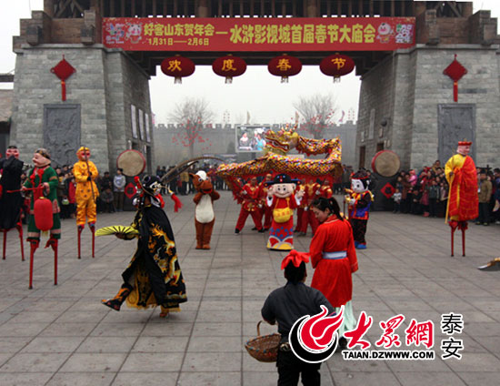 年味濃濃的泰山文化,少不了極具地方特色的廟會活動。大年初一,東平水滸文化廟會在東平水滸影視城拉開帷幕。初一一大早,舞龍耍獅、走高蹺的鑼鼓便敲打起來。據了解,今年的水滸文化廟會將持續到大年初六,娛樂項目也較往年有所增多,除了傳統的拋繡球招親、拉洋片及戲曲演出,為豐富廟會內容,更將幽冥鬼屋及CS真人野戰項目進行升級,利用現代化手段進行效果豐富設定,同時引入沙灘越野摩托等更為刺激的項目。
