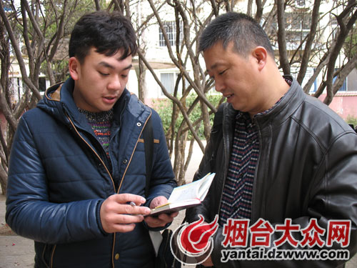 大眾網記者采訪煙臺市慈善總會義工分會情系老人服務隊隊長李衛東(右)