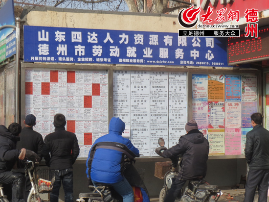 今天雖然還是大年初四,但是在德州市德城區三八路的人力資源市場上已經有不少準備找工作的市民了。“我早上不到八點就已經來了,現在找工作機會多競爭少。”一位正在看招聘啟事的張先生告訴記者。