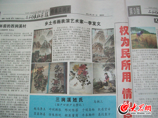 “新春賀詞、工作報告、報喜窗、書記訪談……”春節前后,章丘市雙山街道三澗溪社區(原三澗溪村)自辦的《三澗社區報》第四期陸續發到了社區的每家每戶。這張小小的社區報說的都是身邊的人,講的都是村里的事,投稿的“記者”們也都是社區里的老百姓。大眾網記者了解到,社區報既是三澗溪社區政務公開的“窗口”,又是反映民情的平臺,還是社區居民展示才藝、吐露心聲的舞臺,并因此成為了全村人最“搶手”的報刊。