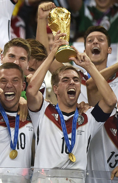 在人聲鼎沸的馬拉卡納大球場,馬里奧-格策重復(fù)了4年前伊涅斯塔的驚天絕殺,攻勢足球的代表德國隊(duì)也復(fù)制了西班牙在4年前的輝煌,在這場足以載入史冊的決賽中,德國人締造了一項(xiàng)曠世的偉業(yè),他們打破了歐洲球隊(duì)從未在南美舉辦的世界杯上奪冠的魔咒,第一次,歐洲球隊(duì)在南美完成了終極征服,勒夫的球隊(duì),干的漂亮!
