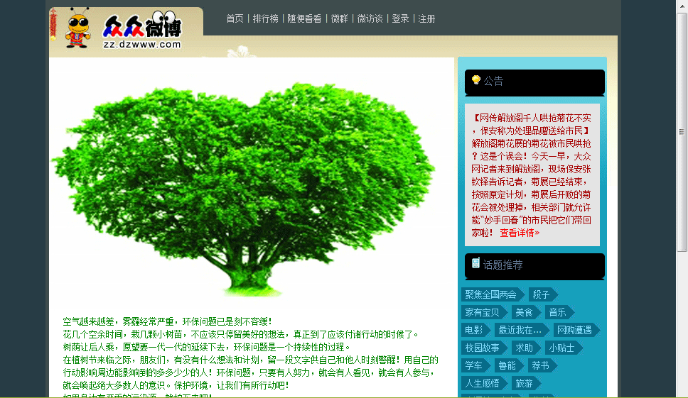 今天上午,以“植綠家園治污減霾,共享齊魯藍天白云”為主題的大眾網·...