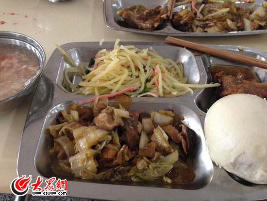 記者專門體驗(yàn)了一下今天中午的高考餐,每人一塊醬排骨,香菇雞塊和炒三絲各一份,外加一碗番茄雞蛋湯,主食有饅頭和米飯可以選擇。葷素搭配合理,咸淡也很適中,分量也很足,完全可以吃飽。王經(jīng)理向記者介紹,每天的高考餐都不一樣,考生如果不夠吃還可以繼續(xù)打飯。