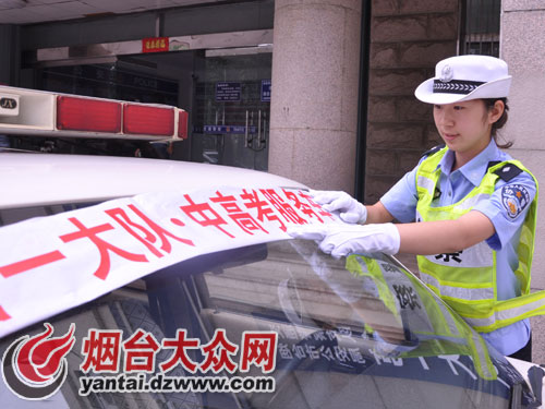 在交警一大隊,記者看到民警們正忙著給警車粘貼“交警一大隊中高考服務車”的標識,民警告訴記者,“所有粘貼‘中高考服務車’的警車都是高考專用車,在高考期間專門為考生服務,保證在考生需要幫助時招手即停,隨時為考生開道!