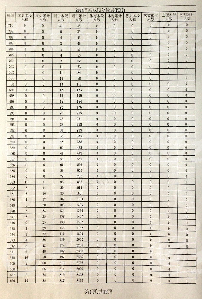 今天,省招考院公布了山東省2014年普通高考成績段表。據統計,2014年山東高考達到一本線的文史類考生有16118人,理工類考生有69844人。文理一共有85962名考生考上了一本線。