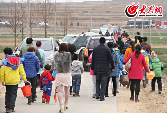 3月14日上午八時許,四十多輛大巴車和近兩百輛私家車在市政府廣場和會展中心集合后,統(tǒng)一出發(fā),大部隊浩浩蕩蕩的趕往兩個植樹地點——東港區(qū)南湖鎮(zhèn)和陳疃鎮(zhèn)