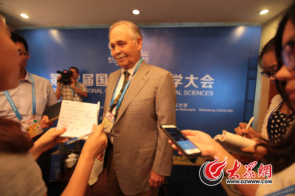 8月27日,第22屆國際歷史科學大會上,美國史學家鮑德威接受記者采訪。大眾網記者 王長坤 攝
