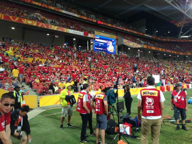 兩球落后的國足陣形前壓,但實力差距較大,無濟于事。主隊依然有擴大比分之勢。第84分鐘,米利甘帶球突入禁區,但射門被王大雷擋出,他還在第89分鐘射門,再次被王大雷撲出。最終國足0:2落敗,無緣亞洲杯四強。澳大利亞隊將在半決賽中面對另一場四分之一決賽日本隊和阿聯酋隊之間的勝者。