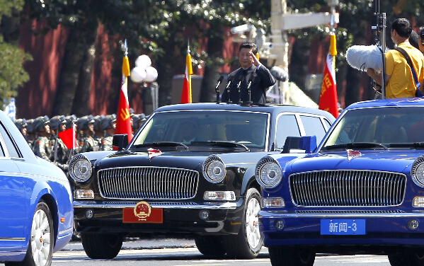 大眾網濟南9月3日訊(記者 于瀟瀟)今天上午,中國人民抗日戰爭暨世界人民反法西斯戰爭勝利70周年紀念大會在北京舉行,中共中央總書記、國家主席、中央軍委主席習近平在乘車檢閱受閱部隊時,不時舉手向受閱官兵致意。細心的網友會發現,習近平時而舉起左手,時而舉起右手。習近平的左右手交替的手勢引起了網友的熱議。