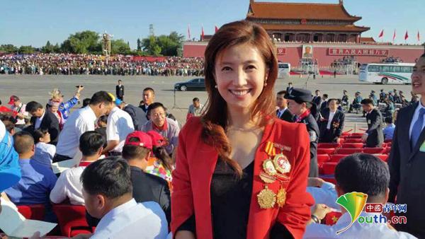全國(guó)五一勞動(dòng)獎(jiǎng)?wù)芦@得者、全國(guó)青聯(lián)委員、著名主持人徐春妮在閱兵觀禮臺(tái)上。徐春妮供圖