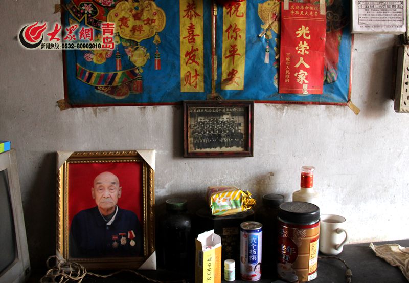 李修山老人家里桌面上一張戴軍章的照片格外醒目。王悅音攝