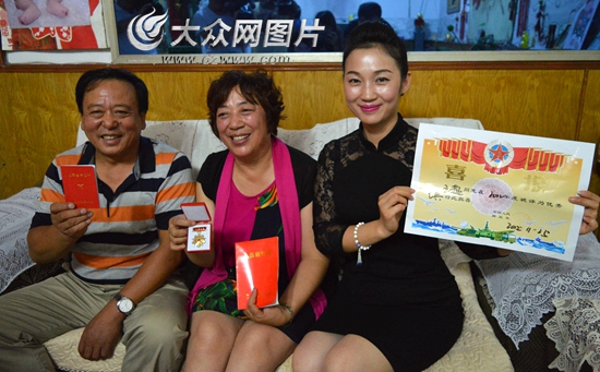 王超的父母和姐姐向大眾網(wǎng)記者展示王超獲得的榮譽(yù)。(記者 王宗陽(yáng) 攝)