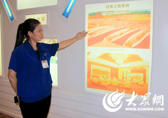據(jù)東升地毯集團(tuán)辦公室主任王秀芬介紹,60年國慶時天安門金水橋鋪設(shè)的也是東升地毯集團(tuán)生產(chǎn)的地毯(大眾網(wǎng)記者 張麗 攝)