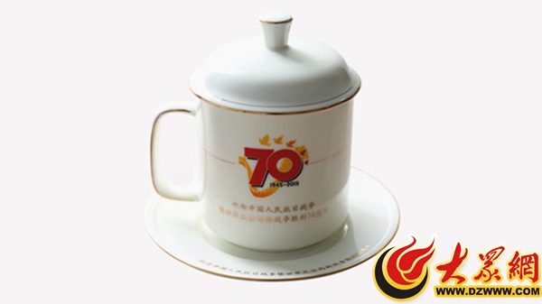 為紀念抗戰勝利70周年大閱兵設計定制的瓷器“一碟一杯”。