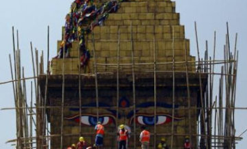 尼泊爾加德滿都重修地震中損壞佛塔