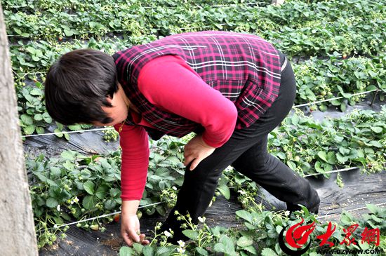 李大姐是四門口村村民,今年蓋了六七畝地的草莓大棚,生意最好的時候一天能賣上幾千塊:“這些日子天氣好、陽光足,草莓長勢也好。從初二開始來摘草莓的就多了,兩三天下來棚里已經挑不出成熟的果子了,草莓長得不夠快呀!”李大姐正盤算著明年要多蓋上幾個大棚。
