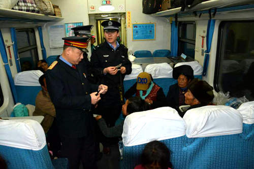 乘警們正在核對旅客的票務信息