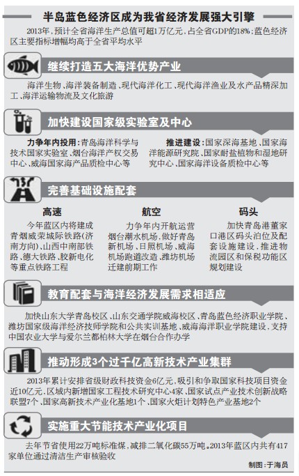 山東半島藍(lán)色經(jīng)濟(jì)區(qū)作為全國(guó)第一個(gè)以海洋經(jīng)濟(jì)為主題的區(qū)域發(fā)展戰(zhàn)略,目前已成為我省經(jīng)濟(jì)發(fā)展的強(qiáng)大引擎。“2013年,預(yù)計(jì)全省海洋生產(chǎn)總值可超1萬(wàn)億元,占全省GDP的18%;藍(lán)色經(jīng)濟(jì)區(qū)主要指標(biāo)增幅均高于全省平均水平。”省發(fā)改委、省區(qū)域辦主任張務(wù)鋒介紹。