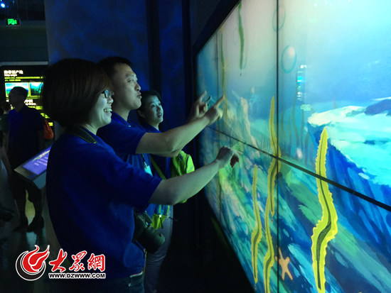 參加采訪活動的媒體記者們在位于一層的海洋食品展示館看到,這里集中展示了海洋食品產(chǎn)業(yè)和歷史文化的發(fā)展歷程。海參館、海帶館和13個食品企業(yè)特展區(qū)、銷售區(qū)讓參觀者在了解學(xué)習(xí)海洋知識的同時,還可以實地品嘗榮成特色海洋食品。二樓的海洋科技館以海洋科普教育為主題,共設(shè)有60個海洋知識點,6個重點展項和1個亮點展項系統(tǒng)展示了海洋自然、海洋開發(fā)利用和海洋環(huán)境保護等知識體系。通過弧幕影院、互動影像、競技游戲以及大型滑動式裸眼3D影院等先進的多媒體技術(shù)手段,參觀者如同身臨其境,寓教于樂。