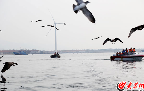 成群結隊的海鷗,你追我趕的搶奪著游人拋向海里的小魚。