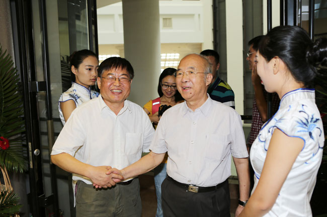 傅合遠(yuǎn)教授向當(dāng)代美學(xué)泰斗曾繁仁先生介紹書展情況